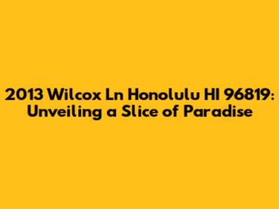 Hey guys! Let's dive into everything you need to know about the address 2013 Wilcox Ln, Honolulu, HI 96819. This isn't just any address; it's a gateway to understanding a piece of real estate nestled in the heart of Honolulu. Whether you're a prospective buyer, a curious neighbor, or just someone who loves exploring property details, this comprehensive guide will provide you with invaluable insights.