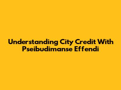Understanding City Credit With Pseibudimanse Effendi
