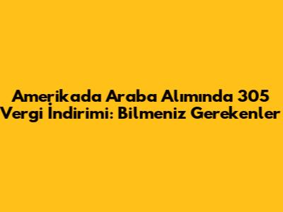 Amerika'da araba alımı sadece 305 vergi indirimiyle sınırlı değildir. Araba alırken dikkat etmeniz gereken başka önemli hususlar da bulunmaktadır.