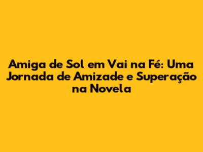 Amiga De Sol Em Vai Na Fé: Novela Explora Amizade E Desafios