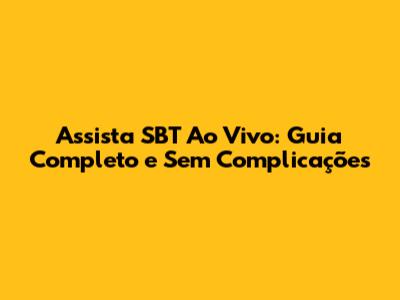 Assista SBT Ao Vivo: Guia Completo E Sem Complicações
