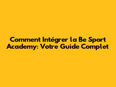 Comment Intégrer La Be Sport Academy: Votre Guide Complet