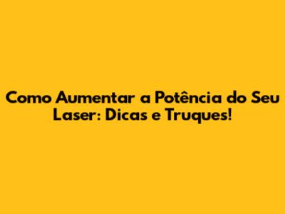 Dicas Práticas para Aumentar a Potência do Laser