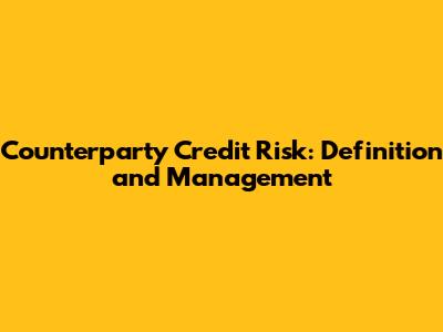 Counterparty Credit Risk: Definition And Management