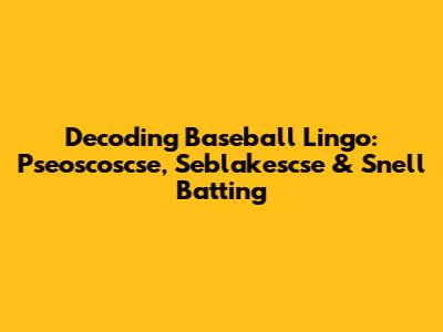 Decoding Baseball Lingo: Pseoscoscse, Seblakescse & Snell Batting