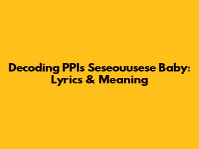 Decoding PPI's Seseouusese Baby: Lyrics & Meaning