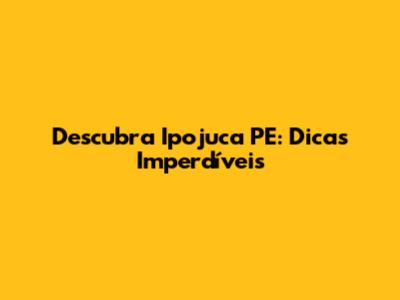 Descubra Ipojuca PE: Dicas Imperdíveis