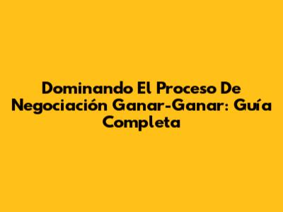 Dominando El Proceso De Negociación Ganar-Ganar: Guía Completa