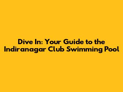 Unveiling the Indiranagar Club Swimming Pool: A Comprehensive Overview