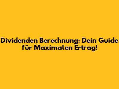 Dividenden Berechnung: Dein Guide Für Maximalen Ertrag!