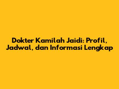 Dokter Kamilah Jaidi: Profil, Jadwal, Dan Informasi Lengkap