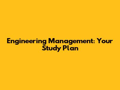 Engineering Management: Your Study Plan