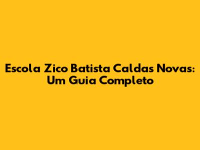 Escola Zico Batista: Tudo Sobre A Unidade Em Caldas Novas