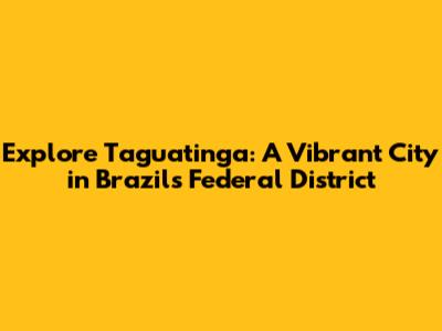 Hey guys! Ever heard of Taguatinga? It's this super cool city located in the Federal District of Brazil, and it's bursting with life, culture, and tons of interesting stuff to explore. If you're planning a trip to Brazil or just curious about different urban centers, Taguatinga should definitely be on your radar. Let’s dive into what makes this city so special!