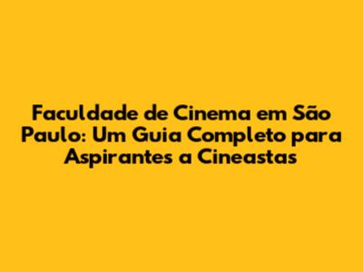 Faculdade De Cinema Em São Paulo: Guia Completo