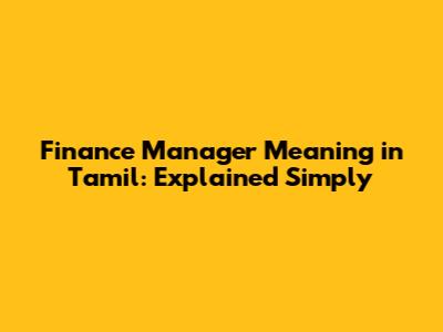 Finance Manager Meaning In Tamil: Explained Simply