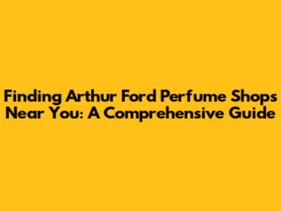 Hey fragrance fanatics! If you're on the hunt for the captivating scents of Arthur Ford perfumes and wondering, "Arthur Ford perfume shops near me?", then you've come to the right place. We're diving deep into how to locate these exquisite fragrances, whether you're a seasoned perfume aficionado or just starting your olfactory journey. Let's explore the world of Arthur Ford perfumes and discover where you can find them.