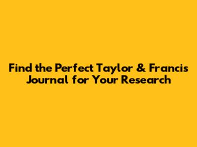 Find The Perfect Taylor & Francis Journal For Your Research