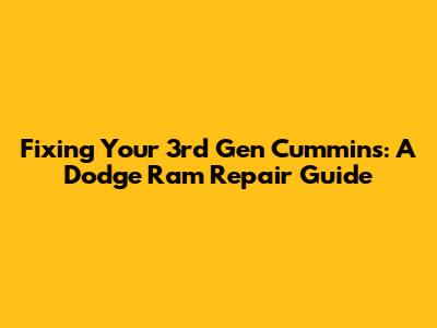 Fixing Your 3rd Gen Cummins: A Dodge Ram Repair Guide
