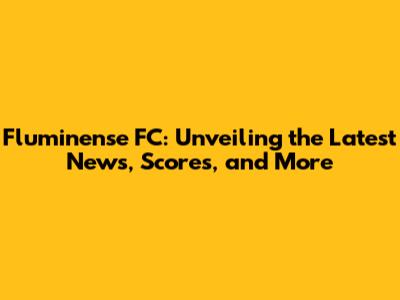 Fluminense FC: Latest News, Scores & More