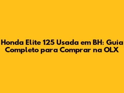 Comprar uma Honda Elite 125 usada em BH pode ser uma ótima experiência se você estiver bem informado e tomar os cuidados necessários. Esperamos que este guia completo tenha te ajudado a entender melhor o mercado, a encontrar as melhores ofertas na OLX e a fazer um negócio seguro.