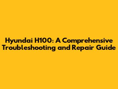Hyundai H100: Troubleshooting & Repair Guide
