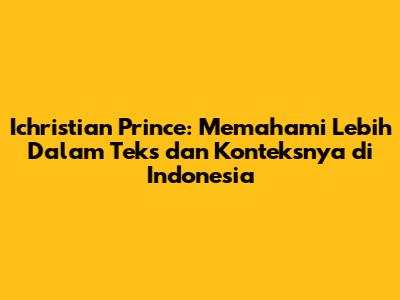 Ichristian Prince: Memahami Lebih Dalam Teks Dan Konteksnya Di Indonesia