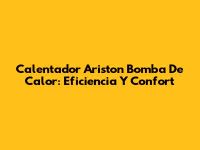 Calentador Ariston Bomba De Calor: Eficiencia Y Confort