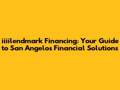 Iiiilendmark Financing: Your Guide To San Angelo's Financial Solutions