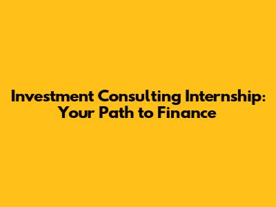 Investment Consulting Internship: Your Path To Finance