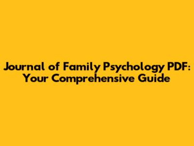 Journal Of Family Psychology: Your PDF Guide