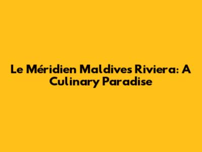 Le Méridien Maldives Riviera: A Culinary Journey