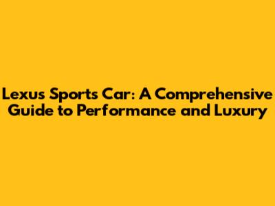 Lexus Sports Car: Performance, Features, And Buying Guide