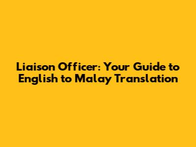Liaison Officer: English To Malay Translation Guide
