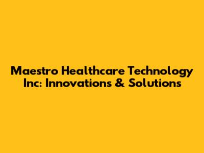 Maestro Healthcare Technology Inc: Innovations & Solutions