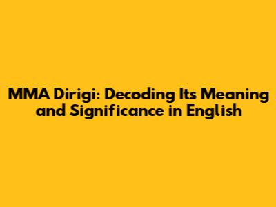 MMA Dirigi: Understanding Its Meaning And Impact