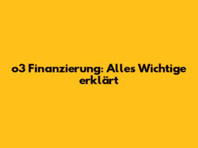 O3 Finanzierung: Alles Wichtige Erklärt
