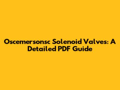 Oscemersonsc Solenoid Valves: A Detailed PDF Guide