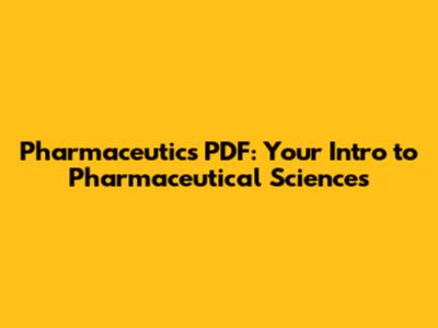 Pharmaceutics PDF: Your Intro To Pharmaceutical Sciences