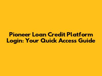 Pioneer Loan Credit Platform Login Guide