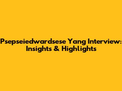 Psepseiedwardsese Yang Interview: Insights & Highlights