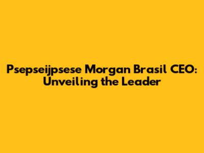 Psepseijpsese Morgan Brasil CEO: Who Is He?