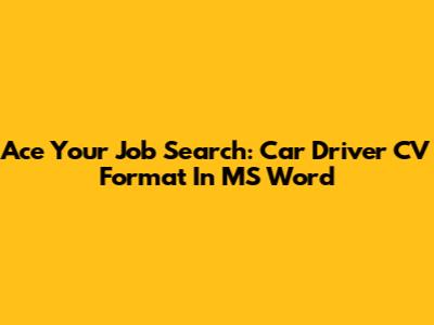 Ace Your Job Search: Car Driver CV Format In MS Word
