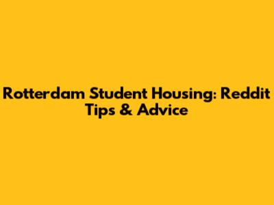 Rotterdam Student Housing: Reddit Tips & Advice