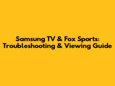 Samsung TV & Fox Sports: Troubleshooting & Viewing Guide