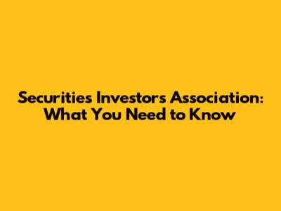 Securities Investors Association: What You Need To Know