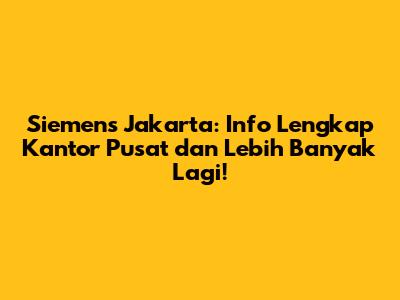 Siemens Jakarta: Info Lengkap Kantor Pusat Dan Lebih Banyak Lagi!