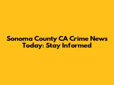 Sonoma County CA Crime News Today: Stay Informed