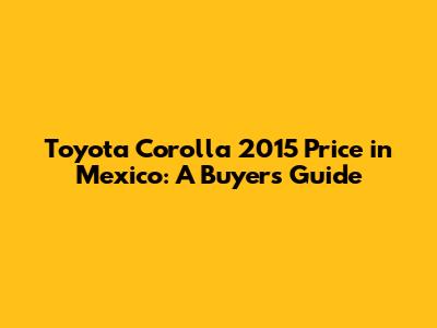 Toyota Corolla 2015 Price In Mexico: A Buyer's Guide