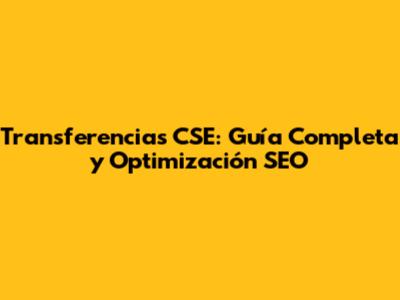Transferencias CSE: Guía Completa Y Optimización SEO